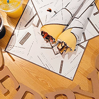 EXPERIENCEクレープ包装紙完成しました!グレーを基調としたシックな雰囲気に仕上がっています。お楽しみに